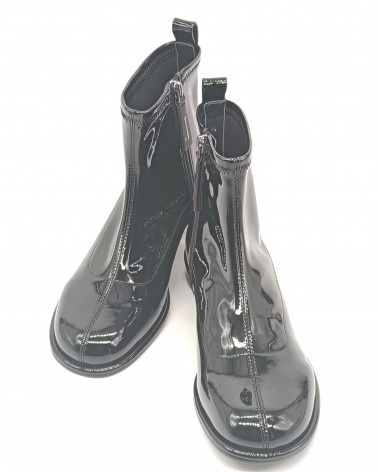 Ciabatta in pelle nera con doppio cinturino regolabile. Fondo gomma alto 7 cm con platform.
