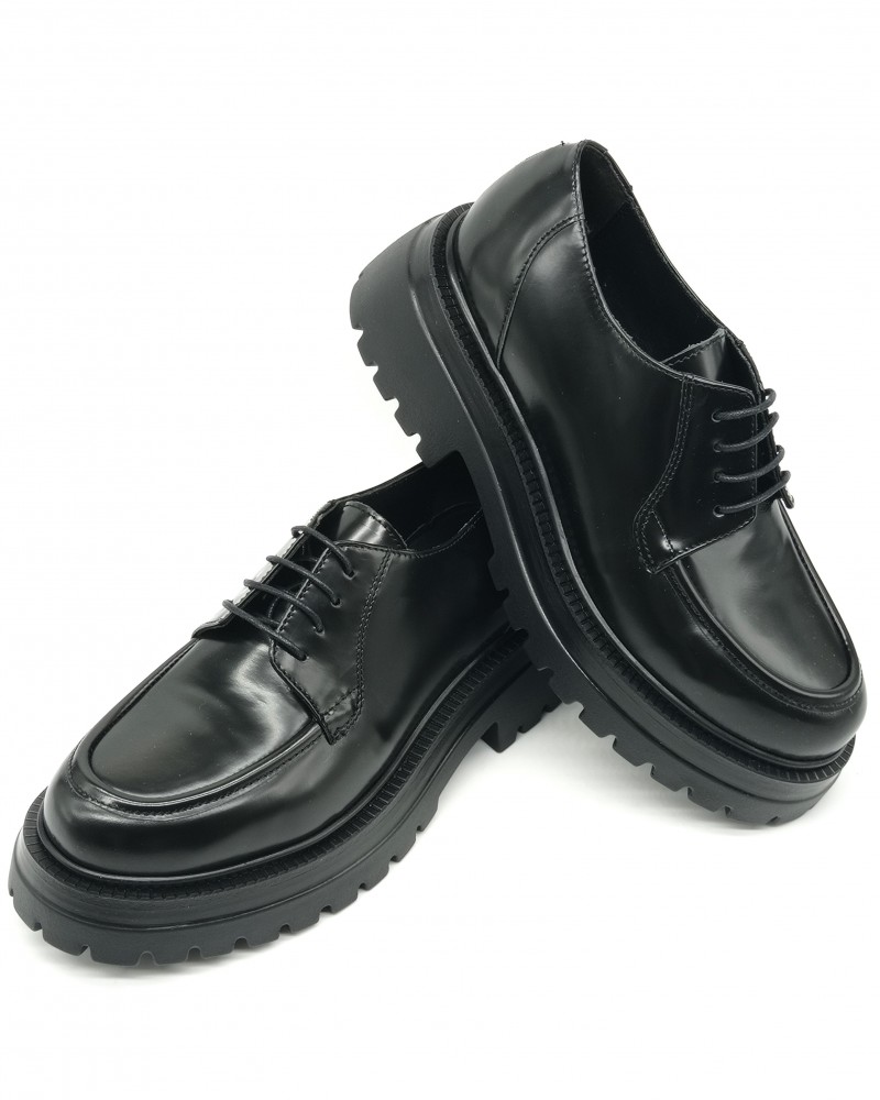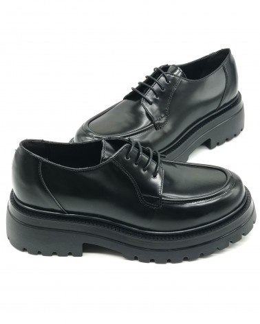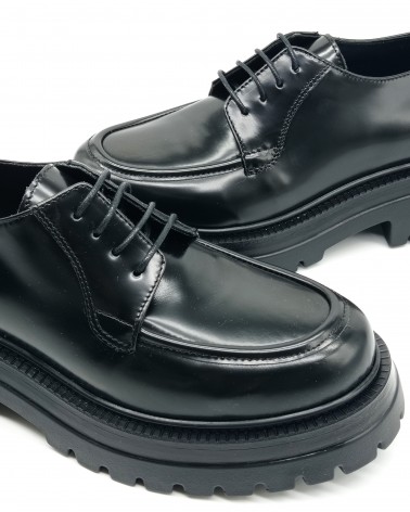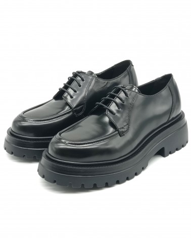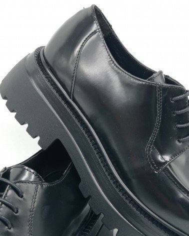 Scarpa allacciata di Dei Colli in pelle spazzolata nera. Vaschetta anteriore e fondo carro in gomma.