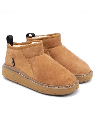 Stivaletto dal taglio basso, versatile e facile da indossare in diverse situazioni quotidiane, comfort e calore sono garantiti. Coccolatevi con il suo tocco vellutato di montone scamosciato e il morbido e caldo pelo interno. La suola è realizzata in mescola bimateriale, una generosa intersuola in EVA mescolata con materiale di scarto industriale riciclato e un battistrada in gomma molto grippante e resistente. L'altezza della suola è di circa 3,5 cm da terra, per una migliore protezione del piede.