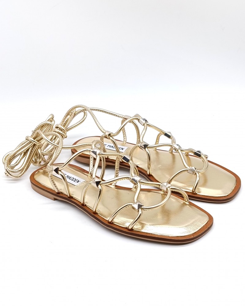 Sandalo alla schiava di Steve Madden. Elegante intreccio sul piede che si conclude con un allacciatura alla schiava che sale sulla gamba. Materiali morbidissimi, plantare imbottito per il massimo confort e fondo gomma.