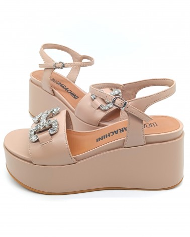 Luciano Barachini sandalo pelle nude con strass zeppa 70