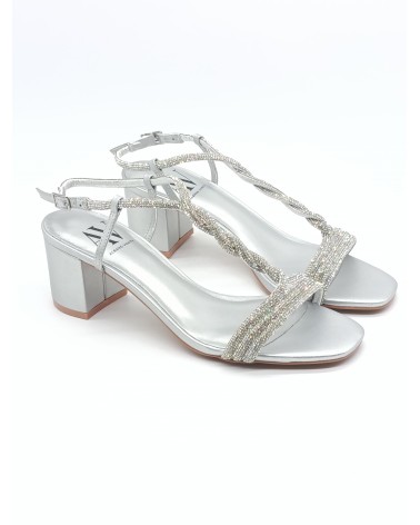Sandalo di Albano Vanity dal design elegante che aggiunge un tocco di brillantezza al tuo look. Tomaia in strass nude con intreccio, fondo in gomma e tacco largo alto 5cm.