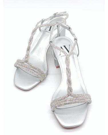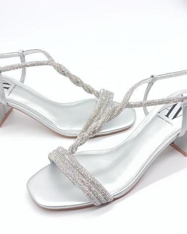 Albano Vanity sandalo strass tacco 5 cm strass argento