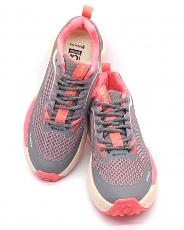 Sneaker di Extr4 adatta per la città ma con spirito oudoor. Tomaia in tessuto, con membrana gore-tex che garantisce impermeabilità e traspirabilità, realizzata in un unico pezzo con punta rafforzata per una maggiore protezione. Soletta removibile in schiuma e microsfere in EVA che offrono un'ammortizzazione ottimale. Suola a 5 componenti per una maggiore stabilità.