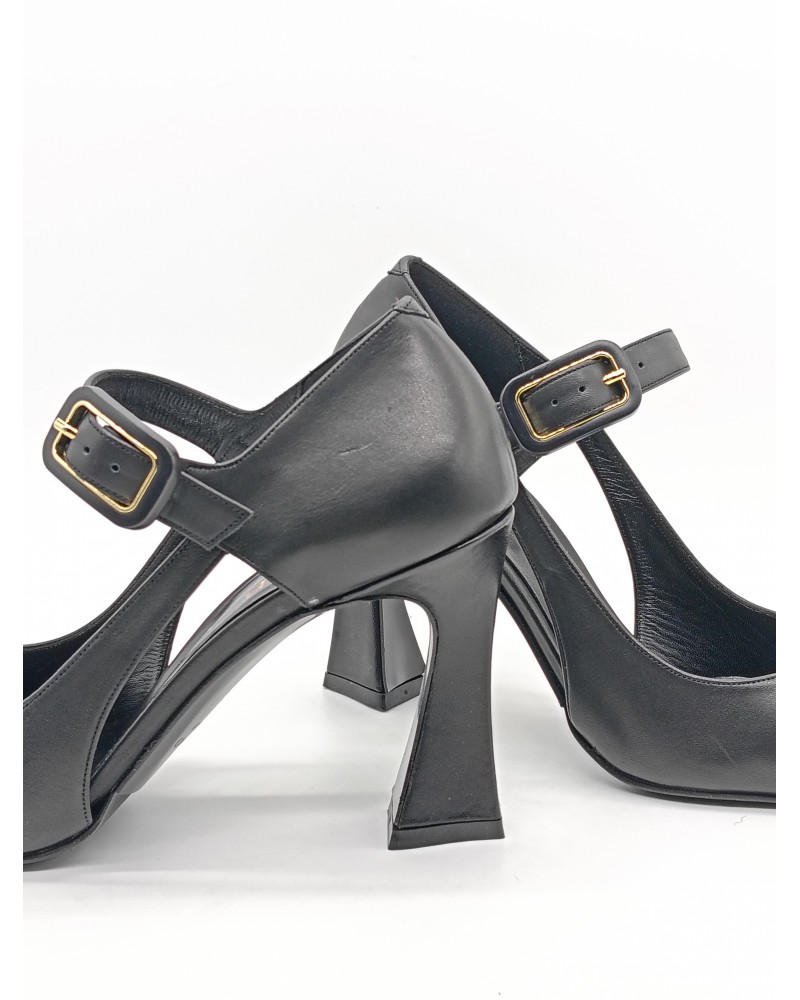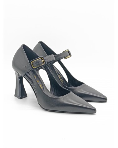 Decoltè dalla punta sfilata con tacco rifasciato a clessidra alto 7cm. Scarpa con apertura laterale e cinturino a rifinire alla caviglia con fibbia metallica. Tomaia e fodera in pelle con fondo in gomma. Perfetta per outfit giornalieri o serate speciali.