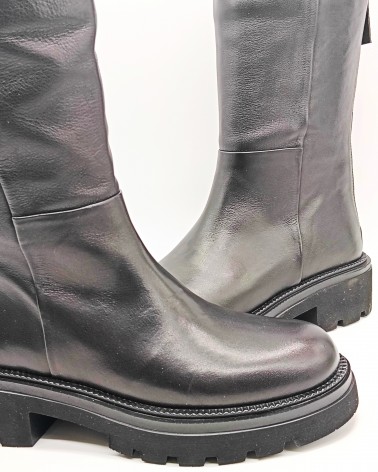 Biker di Albano in pelle nera con punta rotonda che dona un tocco femminile e ricercato. Chiusura con zip anteriore che rende questo stivale pratico per la calzata. Tacco un pò rialzato che slancia mantenendo eleganza e suola in gomma che assicura aderenza. Stivale pensato per le occasioni speciali ma facile da abbinare anche ad un outfit giornaliero.
