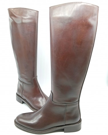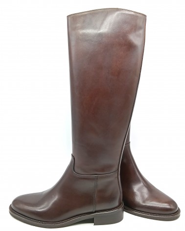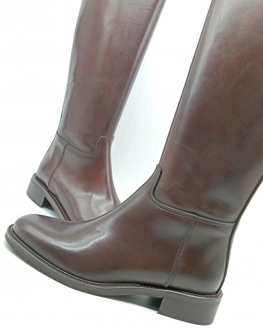 Stivale alto sotto al ginocchio, modello cavaliere, realizzato in pelle testa di moro. La sua linea elegante e pulita, anche nella suola in gomma più leggera, lo rende perfetto per look raffinati con abiti midi e cappotti lunghi, ma anche super glamour per look urbani e giornalieri con pantaloni slim infilati all'interno dello stivale. Il gambale presenta una lieve asimmetria nel design che crea una svasatura sulla parte esterna consentendo maggiore libertà nei movimenti e adattandosi ad ogni gamba, grazie anche all'aiuto del piccolo soffietto con elastico inserito appositamente vicino alla serratura lampo interna, che avvolge con naturalezza la gamba e permette di calzarlo con praticità. La progettazione e lavorazione di questo prodotto avviene interamente in Italia, utilizzando tecniche artigianali tradizionali e materiali di prima scelta.