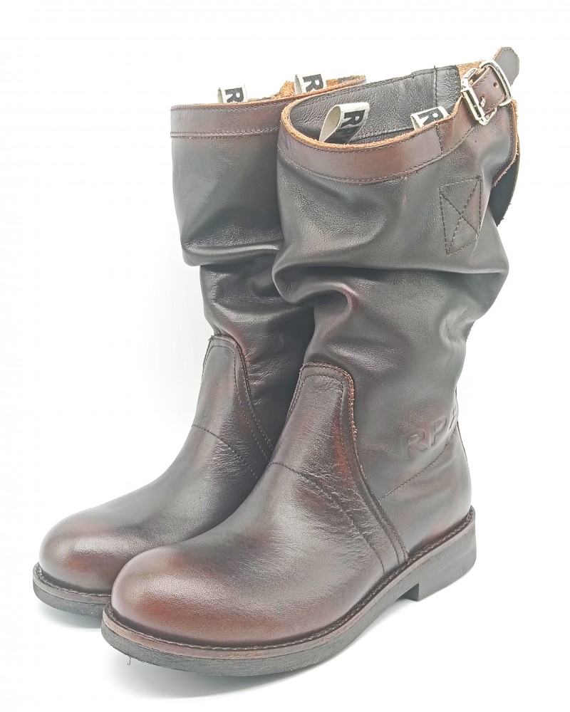 Biker in pelle testa di moro di Rpk. Stivale pratico e comodo con tomaia, fodera e soletta totalmente in pelle ed estraibile, fondo gomma antiscivolo. Nella parte alta del gambale è presente una fibbia regolabile in color argento.