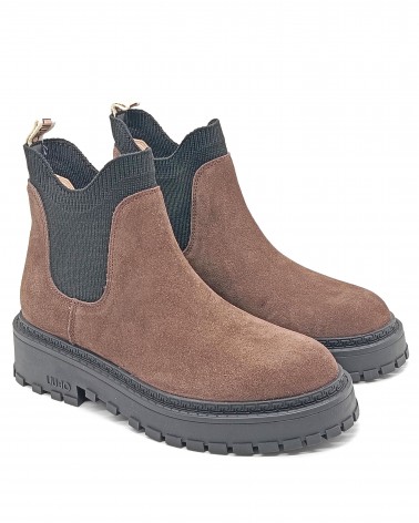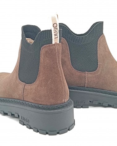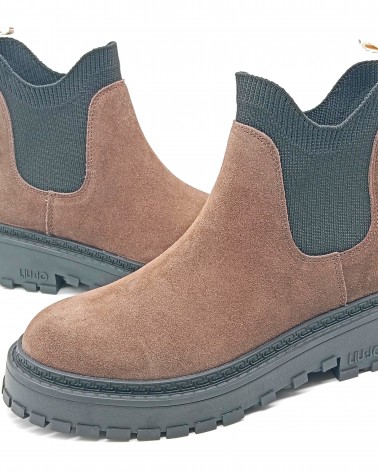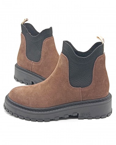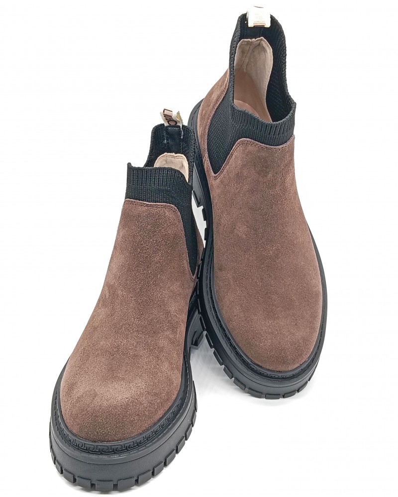 Stivaletto modello Chelsea Boots in camoscio testa di moro con inserti elastici realizzati in morbido tessuto, che creano un effetto calzino e lo rendono pratico e veloce da calzare. Il fondo è dotato di un guardolo logato e battistrada dentellato, perfetto per affrontare la stagione invernale.