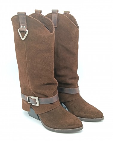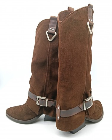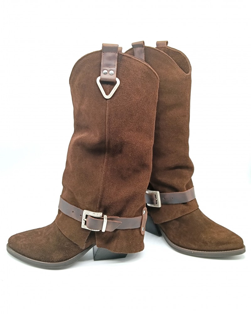 Questo stivale di Rpk in camoscio testa di moro mixa il design classico del texano a uno stile più moderno e elegante grazie alla rovescia che scende morbida fino al tacco, dalla tipica forma larga a trapezio rovesciato con altezza di 7cm. Il gambale è impreziosito da decorazioni triangolari metalliche argentate nella parte alta e da una cavigliera, removibile, regolabile con fibbia argento. Perfetti per un look grintoso ma sofisticato, comodi e versatili per ogni occasione, sia che optiate per la camicia e i classici jeans o sia che decidiate di indossare un abito midi o una mini con blazer. La progettazione e lavorazione di questo prodotto avviene interamente in Italia, utilizzando tecniche artigianali tradizionali e materiali di prima scelta.