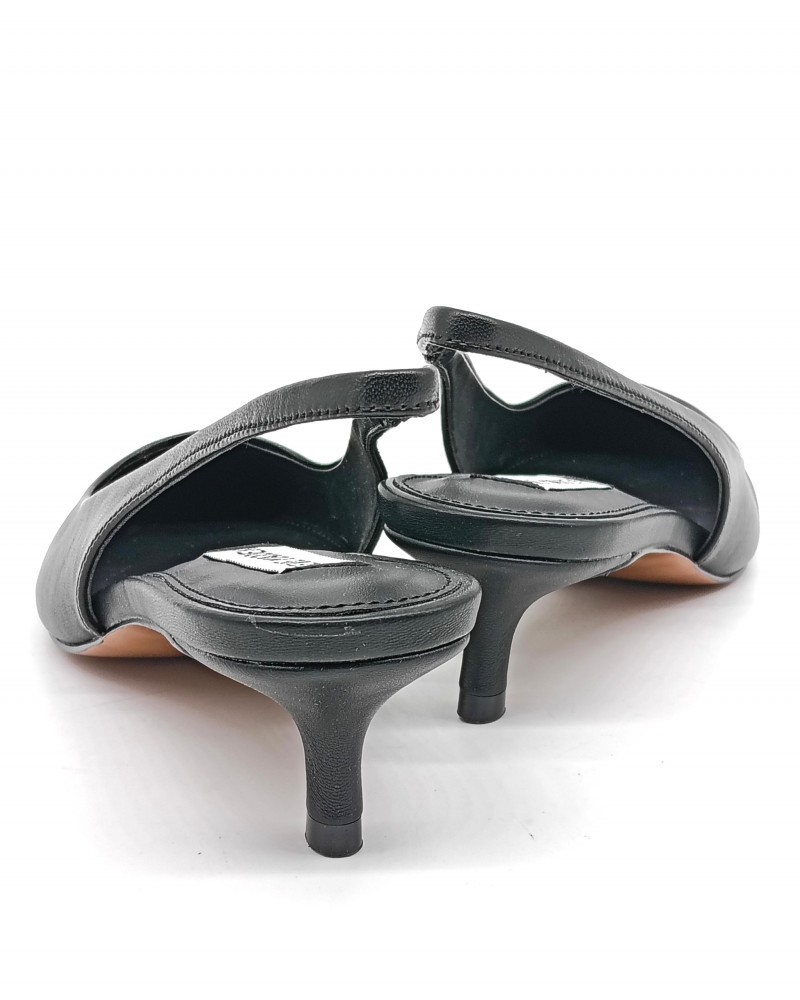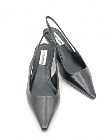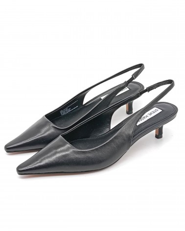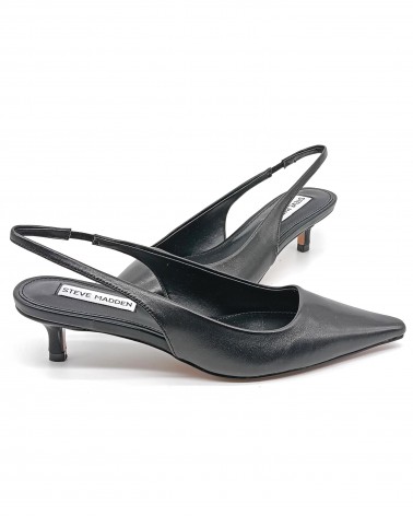 La décolleté slingback, modello slip-on con elastico, KARI di Steve Madden presenta una punta affusolata e un tacco basso, leggermente a rocchetto, che gli conferiscono una silhouette elegante e raffinata dal carattere sofisticato e glamour. La tomaia, in pelle nera, insieme al tacco da 5cm la rendono perfetta per chi cerca la comodità nella quotidianità ma anche nelle occasioni più speciali o serate elagnti. Ideale da abbinare sia su gonne o abiti midi, tailleur sartoriali e pantaloni palazzo per completare i vostri look più chic, che su jeans ballon o wide leg per i vostri look più comfy.
