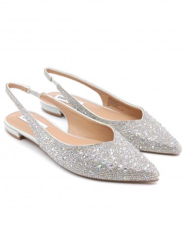 Un modello dal fascino sofisticato e luminoso, perfetto per chi desidera uno chanel raffinato arricchito da dettagli preziosi. Tomaia in tessuto ricoperta completamente da strass color argento che donano una luminosità perfetta per esaltare outfit sia eleganti che casual-chic. La punta sfilata dona un tocco slanciato mentre la scollatura garantisce una calzata confortevole. Il tacco flat offre stabilità e comodità, rendendo questo un modello ideale per un utilizzo quotidiano. Perfetta per chi cerca una scarpa versatile e scintillante, capace di impreziosire look da giorno e da sera con un tocco di classe.