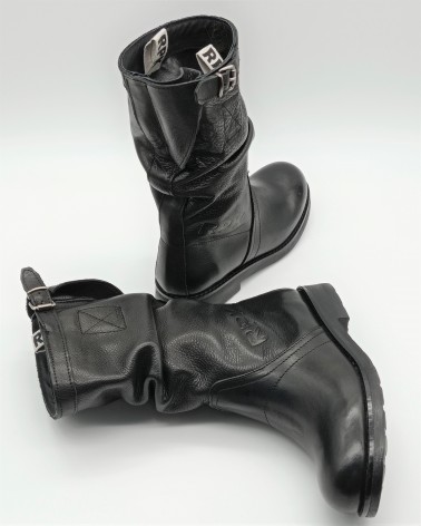 Biker in pelle nera di Rpk. Stivale pratico e comodo con tomaia