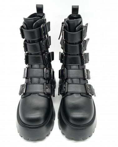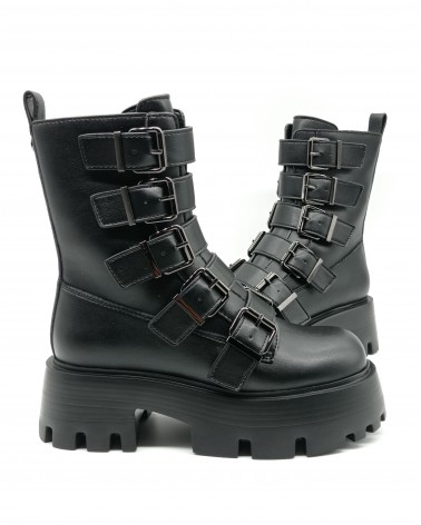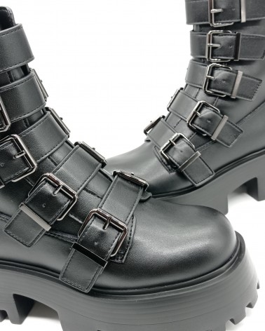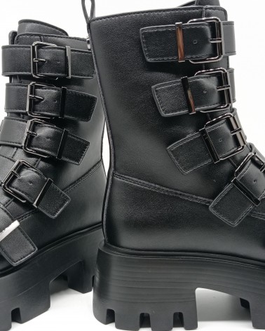 Anfibio modello combact tomaia in pelle nera con fibbie