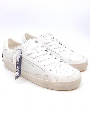 Sneaker con tomaia in pelle bianca e dettagli in camoscio chiaro. Punta con effetto foratura