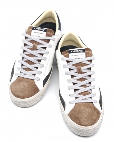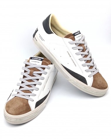 Crime London sneaker camoscio/pelle taupe/white