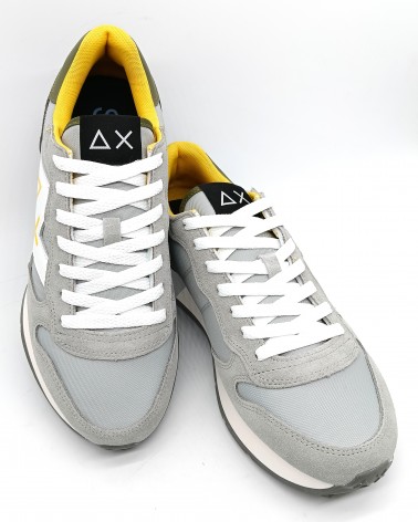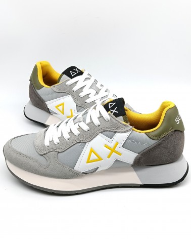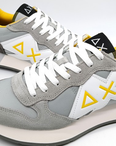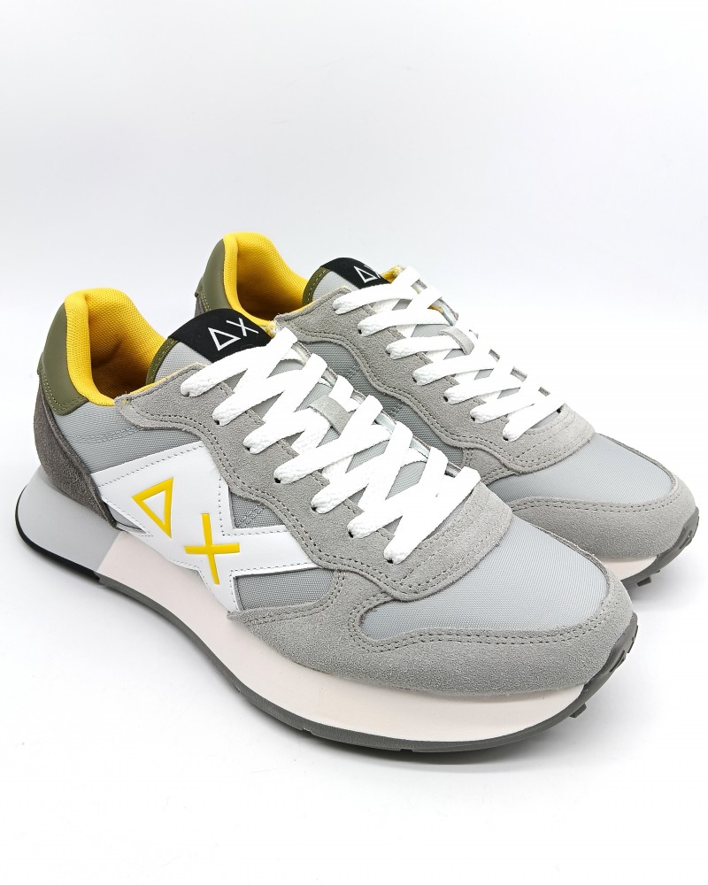La sneaker Jaki 2.0 è il best seller di SUN68 che unisce leggerezza sportiva e stile urbano, ideali per un abbigliamento casual quotidiano, si abbinano con vari outfit grazie alla loro versalità e ai colori vivaci. Il design ispirato alle running le rende perfette per accompagnare ogni vostro passo con leggerezza, versatilità ma anche carattere. Realizzata in nylon e camoscio grigio è rifinita con dettagli gialli e la maxi patch laterale bianca su cui è impresso in giallo l'iconico logo del brand. Soletta estraibile e suola in Eva fresata e battistrada in gomma. Calzata regolare.