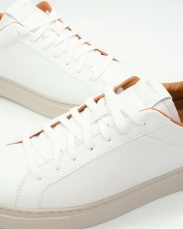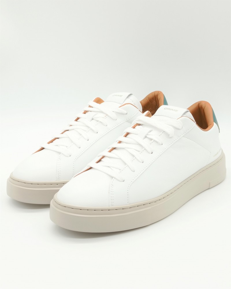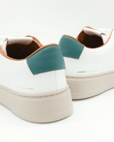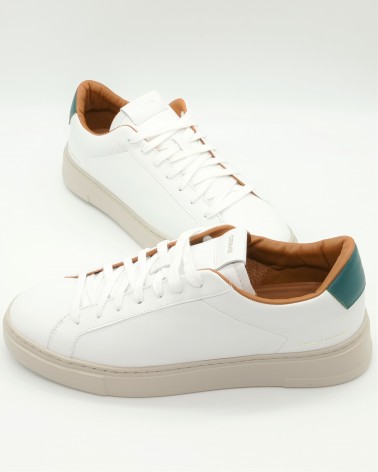 Sneaker allacciata in pelle bianca con tallone green. Linguetta con logo e allacciatura con lacci bianchi in cotone. Soletta interna estraibile.