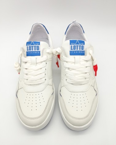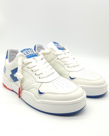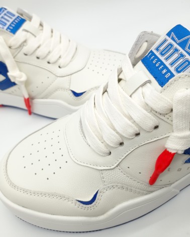Sneaker ispirata al mondo del basket, tomaia in pelle e tessuto, logo in vista su linguetta e tallone. Allacciatura classica, lacci di ricambio.